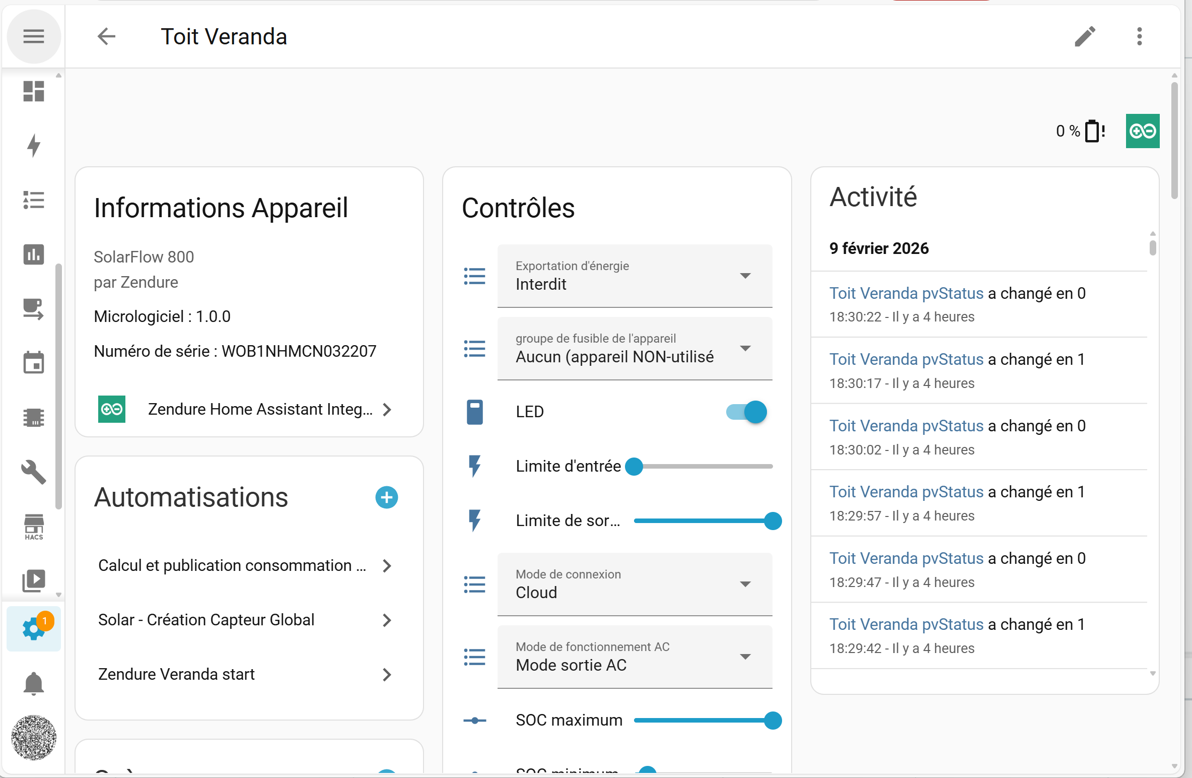 Je m'etendrai pas sur sa configuration, mais une fois intégré à votre compte elle vous remonte vos équipements Zendure
